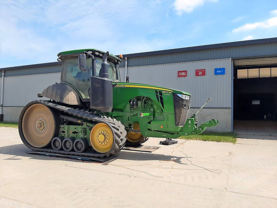 Aeres Hogeschool start een bodemonderzoek naar de verdichting op diepere lagen. Er zijn in de eerste opzet vier trekkers getest waaronder deze John Deere 8370R. Voor de test werden alle trekker op weegplaten gereden om het gewicht van de trekkers vast te stellen.