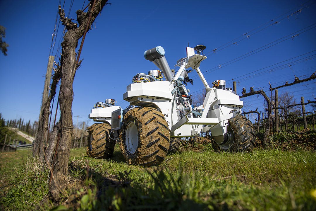 Er zijn 2 al werkende SMASH-prototypes – een voor wijnstokken en de andere voor spinazie. De eerste heeft al belangrijke tests ondergaan in een wijngaard in het Italiaanse Pisa. Deze machine kan zich autonoom verplaatsen, gewassen monitoren, ziekten opsporen en behandelen. Overigens: SMASH bestaat niet uit één enkele machine, maar een reeks apparaten zoals deze robot, een basisstation, drones en veldsensoren. Het zelfrijdende voertuig kan achterop ook machines dragen zoals schoffels, frezen, maaiers of cultivatoren.