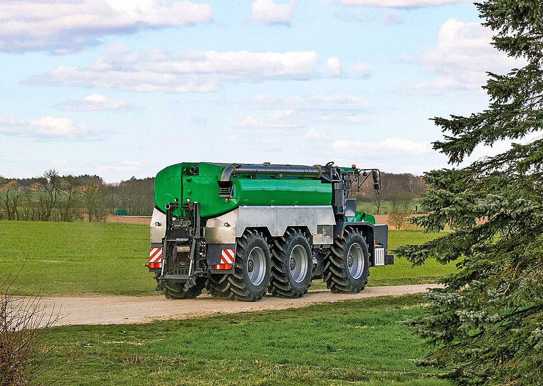 Gespot: een onbekende zelfrijder voor mest in Güllebüffel-kleuren.