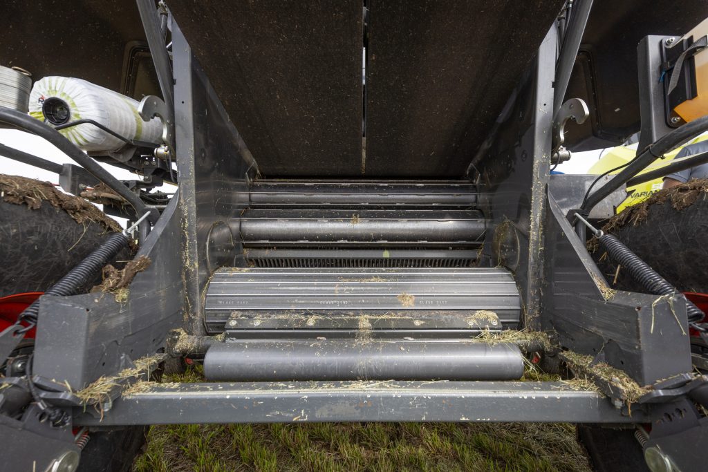 Volgens Claas kan de Cerex-pers in theorie ook binden met plastic, in plaats van met net. Want in tegenstelling tot de Variant-pers is de snijrotor geen onderdeel meer van de perskamer. In de perskamer van de Cerex zit een aparte aandrijfrol die zorgt dat de baal draait.