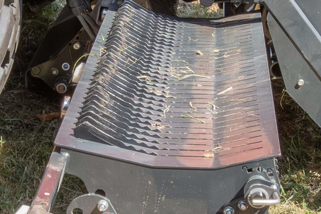 Voorheen werden de messen enkel omhooggeduwd en zakten ze door de zwaartekracht weer terug naar hun positie. Als ze niet goed schoon zijn, kan het zijn dat de messen niet goed terugzakken en klemmen. Met één druk op de knop in de terminal trek je nu actief de messen op en neer, zodat dit niet meer kan gebeuren. Dit doet de fabrikant met een nieuw systeem, gebaseerd op spiraalveren. Zo kun je duwen en trekken tegelijk, waarbij een mes altijd kan wegveren bij een obstakel.