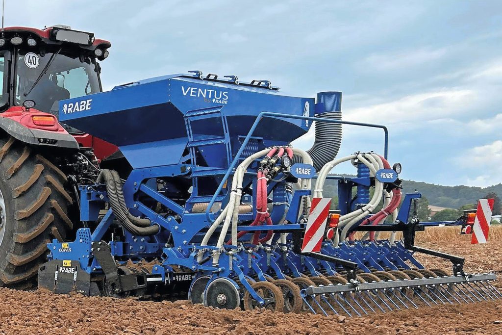 De Duitse machinefabrikant Rabe in Bad Essen presenteert de Ventus-zaaimachine. De 3 meter brede pneumatische zaaimachine is ontwikkeld in samenwerking met de Spaanse fabrikant Sola. De Ventus is uit te voeren met een rijafstand van 12,5 of 15 centimeter.