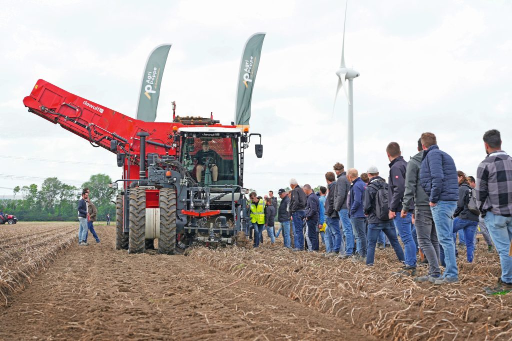 Een rooidemo trekt altijd belangstelling. Zo ook op de PotatoEurope in Lelystad (Fl.). Veel bezoekers van de vakbeurs zien de Agri Poppe AP-Lift-schijvenlichter, hier op een Dewulf-tweerijer gebouwd, voor het eerst aan het werk. Foto’s: Jan Willem Schouten