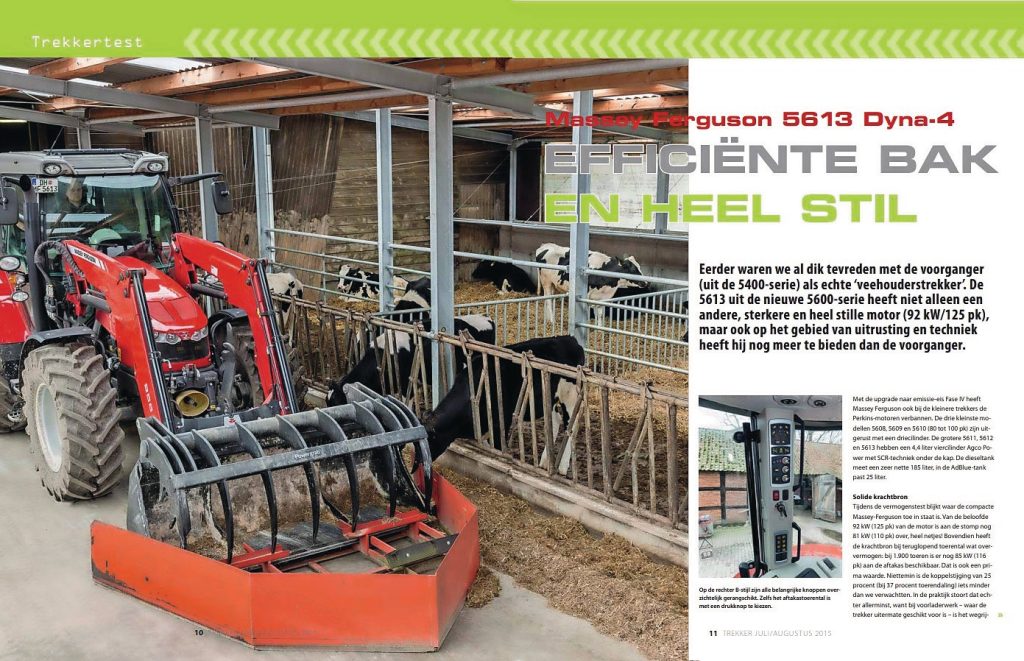 Ook de Dyna-4-transmissie leent zich prima voor voorladerwerk, mede dankzij de zogenoemde Power Control F/R-shuttle links onder het stuur. Menig 5600-occasion is dan ook uitgevoerd met een voorlader, vaak van Alö Quicke, in Massey Ferguson-kleuren.
