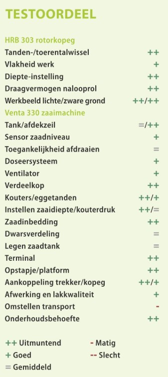Kijk je naar de prijs, dan valt die voor de geteste Venta 330 met de HRB 303-rotorkopeg met € 52.445 relatief voordelig uit. Vergeleken met de grotere Venta 3030 heb je met een kleinere zaadtank en een geringer gewicht hetzelfde goede resultaat in het veld.