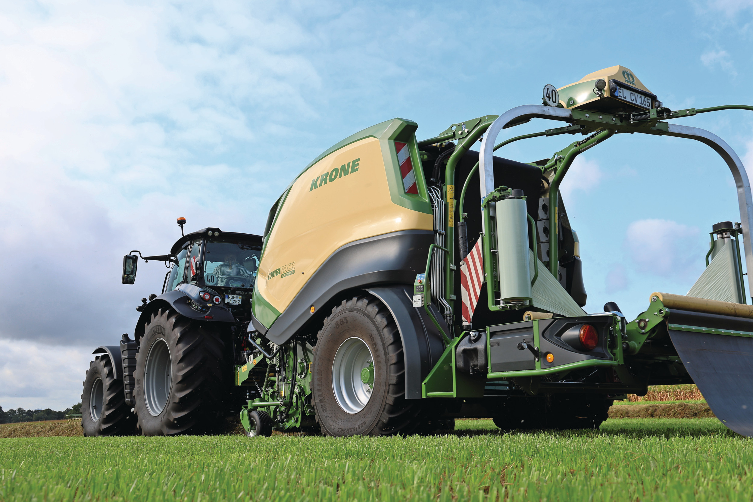 Nieuwe Krone CombiPack HDP CV 165 XC snijdt met 41 messen op 27 mm en heeft tandwielaandrijving, brede persriem en snelle wikkelaar. Foto: Matthijs Verhagen